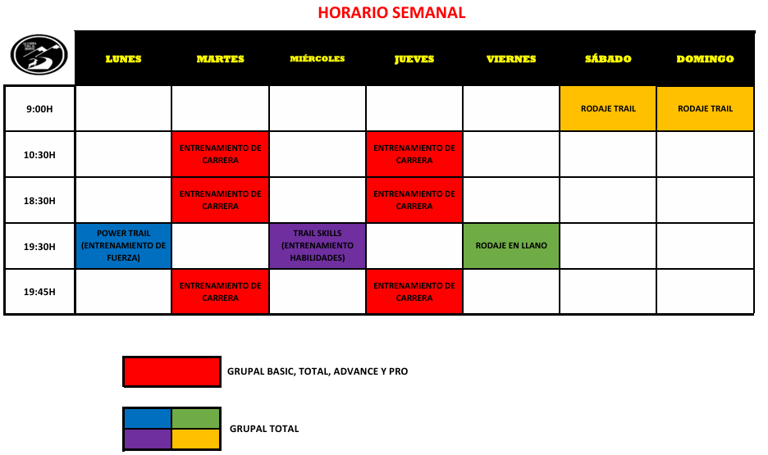 Entrenamientos, actividades y servicios en la montaña.